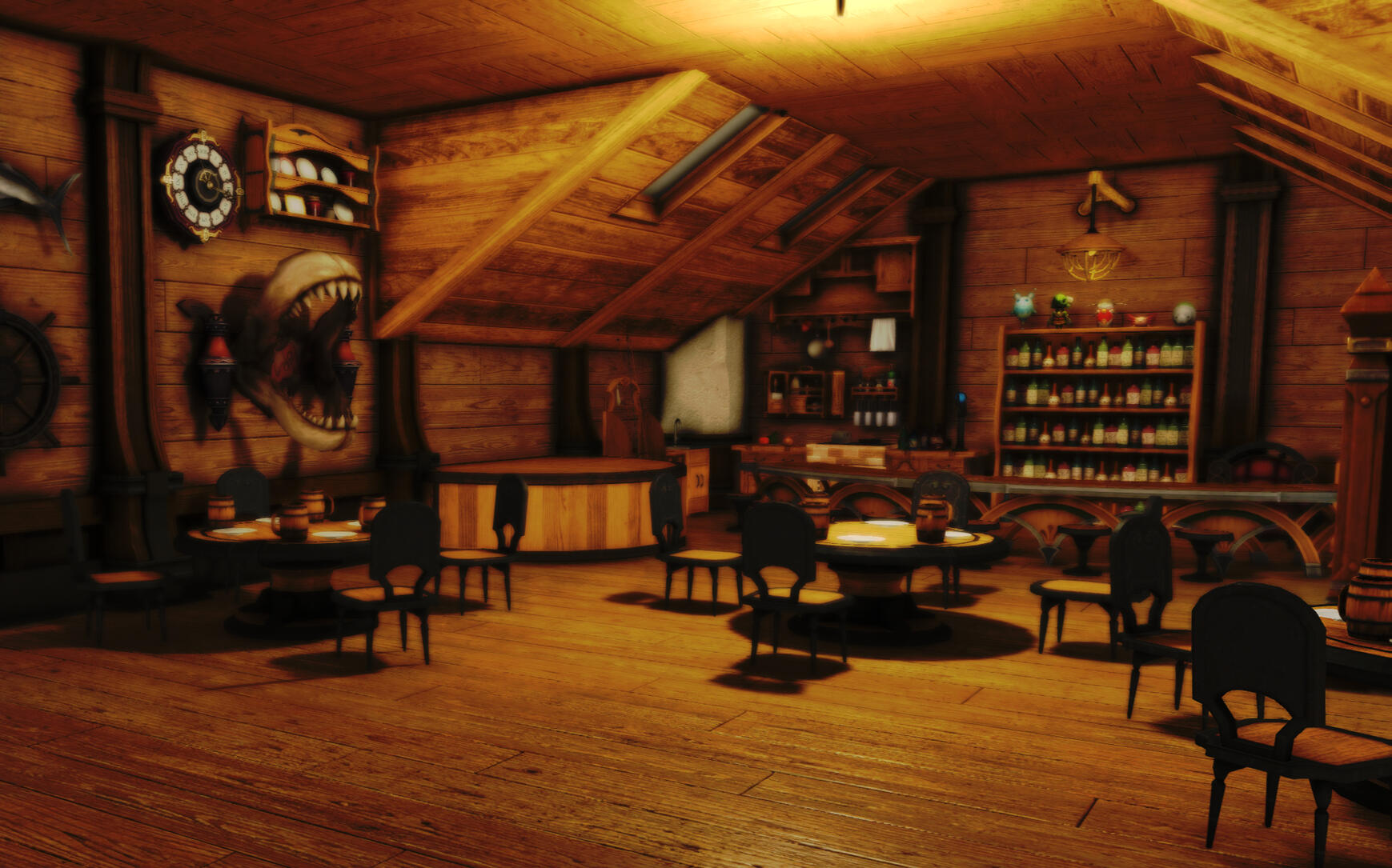 It has everything she needs after a long voyage: a warm shower, a comfortable bed, and a healthy supply of liquor.Up in the loft, she also has a small workshop to satisfy her tinkering needs, often cobbling together models of miniature airships in her spare time. There's even a few hidden treasure troves that only Skala knows how to get to.If you're lucky, maybe she'll invite you over some time!