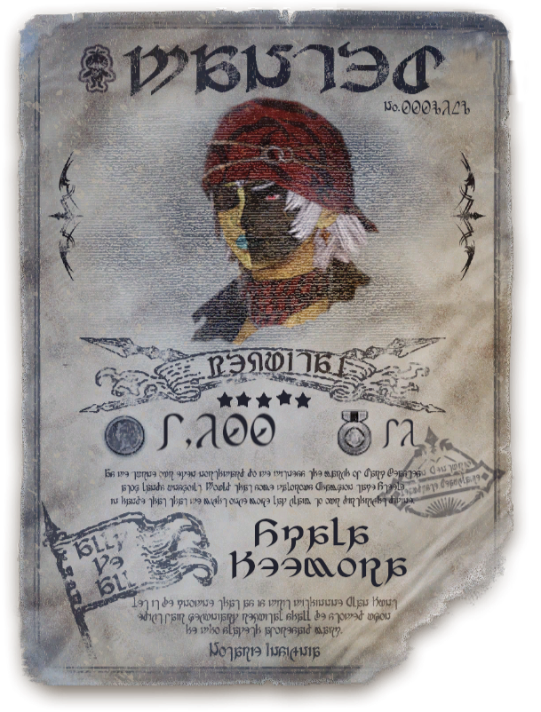 If you've ever glanced at the Hunt Board in Kugane, perhaps you've seen this poster before. In her younger days, Skala made her living as a pirate and a smuggler sailing the Ruby Sea, becoming known by such as epithets as "the Emerald Queen" or the more derogatory "Two-Faced Skala." Though it's been many years since then, her bounty is technically still active, so she occasionally gets targeted by bounty hunters, even here in Eorzea.If you're from around there, maybe you've heard first-hand of the nefarious Captain Skala and her Emerald Pirates. Or perhaps you've run afoul of them in the past, and want to settle the score.